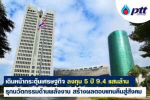 กลุ่ม ปตท. เดินหน้าลงทุนกระตุ้นเศรษฐกิจ 5 ปี 9.4 แสนล้านบาท รุกนวัตกรรมด้านพลังงาน สนับสนุนอุตสาหกรรมเป้าหมายของประเทศ สร้างผลตอบแทนคืนสู่สังคม