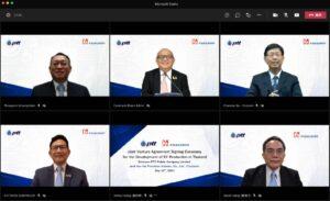 นายสุพัฒนพงษ์ พันธ์มีเชาว์ รองนายกรัฐมนตรีและรัฐมนตรีว่าการกระทรวงพลังงาน เป็นประธานใน พิธีลงนามความร่วมมือด้านการลงทุนอุตสาหกรรมยานยนต์ไฟฟ้าในประเทศไทย ระหว่าง บริษัท ปตท. จำกัด (มหาชน) กับ บริษัท หงไห่ พริซิชั่น อินดัสทรี จำกัด (Hon Hai Precision Industry Co., Ltd.) หรือ ฟ็อกซ์คอนน์ (Foxconn) ในรูปแบบเสมือนจริง (Virtual JVA Signing Ceremony) จัดขึ้น ณ กรุงเทพฯ ประเทศไทย และ กรุงไทเป ไต้หวัน เพื่อสร้างฐานการผลิตยานยนต์พลังงานไฟฟ้าในประเทศไทย โดยใช้ความเชี่ยวชาญของ ฟ็อกซ์คอนน์ ทางด้านนวัตกรรมเทคโนโลยีในการผลิตและพัฒนาแพลตฟอร์มยานยนต์ไฟฟ้า ผสานกับองค์ความรู้ การดำเนินธุรกิจในประเทศไทยของ กลุ่ม ปตท. ซึ่งจะช่วยผลักดันให้อุตสาหกรรมยานยนต์ในประเทศไทยเปลี่ยนผ่านสู่เทคโนโลยียานยนต์ไฟฟ้าสมัยใหม่ ส่งเสริมอุตสาหกรรมการผลิตและเศรษฐกิจของประเทศให้เติบโต และเพิ่มขีดความสามารถการแข่งขันในระดับสากลมากยิ่งขึ้น โดยมี นายอรรถพล ฤกษ์พิบูลย์ ประธานเจ้าหน้าที่บริหารและกรรมการผู้จัดการใหญ่ บริษัท ปตท. จำกัด (มหาชน) และ นาย ยัง ลวือ ประธานกรรมการและประธานเจ้าหน้าที่บริหารฟ็อกซ์คอนน์ (Mr. Young Liu, Chairman and CEO of Foxconn) ร่วมลงนาม โดยได้รับเกียรติจาก ศาสตราจารย์พิเศษ ดร.ทศพร ศิริสัมพันธ์ ประธานกรรมการ ปตท. นายนฤตม์ เทอดสถีรศักดิ์ รองเลขาธิการคณะกรรมการส่งเสริมการลงทุน ดร.ลัษมณ อรรถาพิช รองเลขาธิการคณะกรรมการนโยบายเขตพัฒนาพิเศษภาคตะวันออก นางสาวซีแอล ฮวง ประธานเจ้าหน้าที่บริหารการเงินทั่วไป หงไห่ เทคโนโลยี กรุ๊ป (Ms. C.L. Huang, General Chief Financial Officer of Hon Hai Technology Group) นายเดวิด ฮวง ประธานเจ้าหน้าที่บริหารการเงินฟ็อกซ์คอนน์ (Mr. David Huang, Chief Financial Officer of Foxconn) และ นายซีซี ลิน ผู้จัดการทั่วไป หงไห่ อี บิสซิเนส กรุ๊ป (Mr. C.C. Lin, GM of Hon Hai E Business Group) พร้อมด้วย ผู้บริหารระดับสูงจากหน่วยงานภาครัฐที่เกี่ยวข้อง ผู้บริหารระดับสูง ปตท. และ ฟ็อกซ์คอนน์ ร่วมเป็นสักขีพยาน