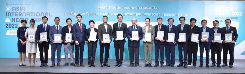 สมาคมการค้าอุตสาหกรรมกัญชงไทย (Thai Industrial Hemp Trade Association: TiHTA) จับมือพันธมิตร 12 สมาคมอุตสาหกรรมการผลิต ลงนามบันทึกข้อตกลงความร่วมมือ (MoU) เชื่อมโยงเครือข่ายการใช้ประโยชน์จากพืชกัญชงในภาคอุตสาหกรรมและการแพทย์ และการจัดงาน “Asia International Hemp Expo 2022” ณ ศูนย์การประชุมแห่งชาติสิริกิติ์ รวมนวัตกรรมและเทคโนโลยีเพื่อขับเคลื่อนอุตสาหกรรมกัญชงอย่างครบวงจร พร้อมติดปีกไทยสู่ฮับอุตสาหกรรมการใช้ประโยชน์จากพืชกัญชงของเอเชีย คาดสร้างรายได้กว่า 2 หมื่นล้านบาท ภายใน 5 ปี