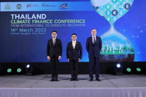 สำนักงานนโยบายและแผนทรัพยากรธรรมชาติและสิ่งแวดล้อม (สผ.) ร่วมกับโครงการด้านนโยบาย ภายใต้แผนงานความร่วมมือไทย – เยอรมัน ด้านการเปลี่ยนแปลงสภาพภูมิอากาศ องค์กรความร่วมมือระหว่างประเทศของเยอรมัน (GIZ) จัดการประชุมสัมมนากลไกการเงินด้านการเปลี่ยนแปลงสภาพภูมิอากาศ “Thailand Climate Finance Conference: From International to Domestic Mechanism” เพื่อเผยแพร่ข้อมูลทางการเงินและการลงทุนด้านการเปลี่ยนแปลงสภาพภูมิอากาศ ให้ทุกภาคส่วนได้รับทราบกลไกทางการเงินด้านการเปลี่ยนแปลงสภาพภูมิอากาศ และโอกาสในการเข้าถึงแหล่งเงินทุน และรับฟังความคิดเห็นของภาคเอกชนเกี่ยวกับความท้าทาย ช่องว่างและโอกาสในการพัฒนาธุรกิจที่ปล่อยก๊าซเรือนกระจกต่ำรวมทั้งความต้องการขอรับการสนับสนุนในการพัฒนาและการลงทุนในเทคโนโลยีที่ปล่อยก๊าซเรือนกระจกต่ำผ่านการประชุมเชิงปฏิบัติการเชิงลึก