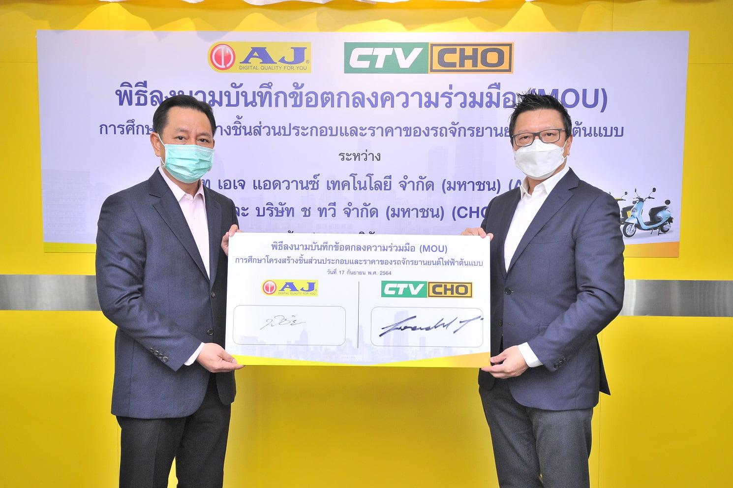 นายพิชัย ปัญจสังข์ ประธานเจ้าหน้าที่บริหาร บริษัท เอเจ แอดวานซ์ เทคโนโลยี จำกัด (มหาชน) (AJA) เปิดเผยว่าได้ลงนามความร่วมมือ (เอ็มโอยู) กับ บริษัท ช ทวี จำกัด (มหาชน) (CHO) ทำการศึกษาโครงสร้างชิ้นส่วนประกอบและราคาของรถจักรยานยนต์ไฟฟ้า เพื่อความเป็นไปได้ที่จะผลิต ประกอบรถจักรยานยนต์ไฟฟ้าทั้งคันหรือบางส่วน และตัวแบตเตอรี่รถจักรยานยนต์ไฟฟ้า โดยมีวัตถุประสงค์ที่จะลดต้นทุนของการจัดสร้างรถจักรยานยนต์ไฟฟ้า ในการจำหน่ายและให้ลูกค้า ได้ใช้บริการหลังการขาย