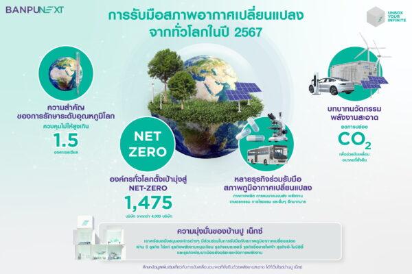 ท่ามกลางความตื่นตัวด้านความยั่งยืนที่เติบโตขึ้นทั่วโลก บ้านปู เน็กซ์ เชื่อว่านวัตกรรมพลังงานสะอาด อาทิ แหล่งพลังงานหมุนเวียน ระบบกักเก็บพลังงาน ระบบบริหารจัดการพลังงาน ยานพาหนะพลังงานไฟฟ้า ตลอดจนเทคโนโลยีดักจับ กักเก็บ และใช้ประโยชน์คาร์บอน มีความจำเป็นต่อการบรรลุเป้าหมายด้าน Net-Zero เนื่องจากนวัตกรรมเหล่านี้มีบทบาทในการลดการปล่อยคาร์บอน จึงช่วยให้เกิดการเปลี่ยนผ่านสู่ยุคพลังงานหมุนเวียน และนำไปสู่อนาคตที่ยั่งยืนในท้ายที่สุด โดยภายใต้ความมุ่งมั่นที่จะส่งเสริมอนาคตที่ดียิ่งขึ้นให้กับทุกคน บ้านปู เน็กซ์ เดินหน้าพัฒนาโซลูชันพลังงานสะอาดอย่างต่อเนื่องเพื่อขับเคลื่อนการเปลี่ยนผ่านอย่างเป็นรูปธรรม และได้ช่วยให้คู่ค้าลดการปล่อยคาร์บอนได้ประมาณ 4 แสนตัน เทียบเท่าการปลูกต้นไม้ประมาณ 29 ล้านต้นถือเป็นส่วนหนึ่งที่สำคัญต่อการขับเคลื่อนสังคมไร้คาร์บอนพร้อมทั้งสนับสนุนประเทศไทยเพื่อให้บรรลุเป้าหมายความเป็นกลางทางคาร์บอนภายในปี พ.ศ. 2593 และการปล่อยก๊าซเรือนกระจกสุทธิเป็นศูนย์ภายใน พ.ศ. 2608