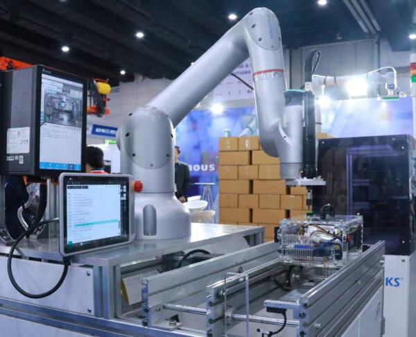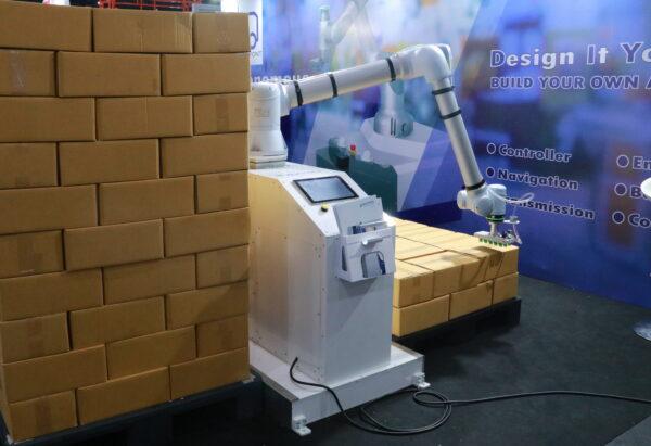 โดย AMR เป็นหุ่นยนต์ประเภทหนึ่งที่มีคุณสมบัติในการขนส่งหรือลำเลียงทั้งภายในอาคารและภายนอกอาคาร ซึ่งในปัจจุบันหุ่นยนต์ประเภทนี้จะเข้ามาทดแทนการเดินขนส่งของคนในส่วนงานการผลิตในโรงงานที่มีพื้นที่กว้างใหญ่และมีพื้นที่เยอะ สำหรับเทคโนโลยี AMR นี้ ทางกลุ่มได้มีการร่วมกันพัฒนาและวิจัย เพื่อผลิตมาเป็นผลิตภัณฑ์จำหน่ายสู่ภาคอุตสาหกรรมการผลิต โดยที่ผ่านมาเราได้นำ AMR ออกมาโชว์ในงานอินเตอร์แมค 2024 อีกด้วย และอีกหนึ่งธุรกิจคือ “Collaborative Robot” หรือเรียกสั้นๆ ว่า “Cobot” เป็นเทคโนโลยีที่ใช้ในอุตสาหกรรมการผลิตเพื่อทำงานร่วมกับคน และมีระบบที่ให้ความปลอดภัยสูง ซึ่งเราได้ร่วมมือกับ AUCTECH พาร์เนอร์ที่เป็นผู้เชี่ยวชาญเกี่ยว Cobot สัญชาติจีน ในการพัฒนาหุ่นยนต์ที่มีหลายไซน์หลายขนาด โดยทางบริษัทได้เลือกหุ่นยนต์ Cobot ประเภทแอพพลิเคชันการทำงานด้านการเรียงกล่อง หรือเรียกว่า “Palletizing” สำหรับ Cobot ตัวนี้ จะให้คุณสมบัติที่โดดเด่นด้านการรับน้ำหนักได้ถึง 25 กิโลกรัม ซึ่งในตลาด Cobot ไซน์ขนาดใหญ่ๆ แบบนี้จะมีน้อยมาก นอกจากนี้ยังมีในเรื่องของแกนที่ 7 ของหุ่นยนต์ เพื่อเพิ่มพื้นที่ในการทำงานที่มีพื้นที่กว้างและมีความสูงสำหรับการเรียงกล่องได้อีกด้วย โดย Cobot เราสามารถทำงานได้ด้วยความสูงถึง 2 เมตร ขึ้น/ลง ตามประเภทความสูงและความกว้างของกล่อง ในส่วนของโปรแกรมการใช้งานง่ายมาก สามารถกำหนดและสั่งงานได้เลยไม่ยุ่งยากเมื่อนำไปติดตั้ง