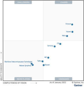 อีริคสัน (NASDAQ: ERIC) ได้รับเลือกให้เป็นผู้นำโครงสร้างพื้นฐานเครือข่าย 5G สำหรับผู้ให้บริการด้านสื่อสาร ตามรายงาน Magic Quadrant for 5G Network Infrastructure for Communications Service Providers ประจำปี 2565 ที่จัดทำโดยบริษัท การ์ทเนอร์ อิงค์