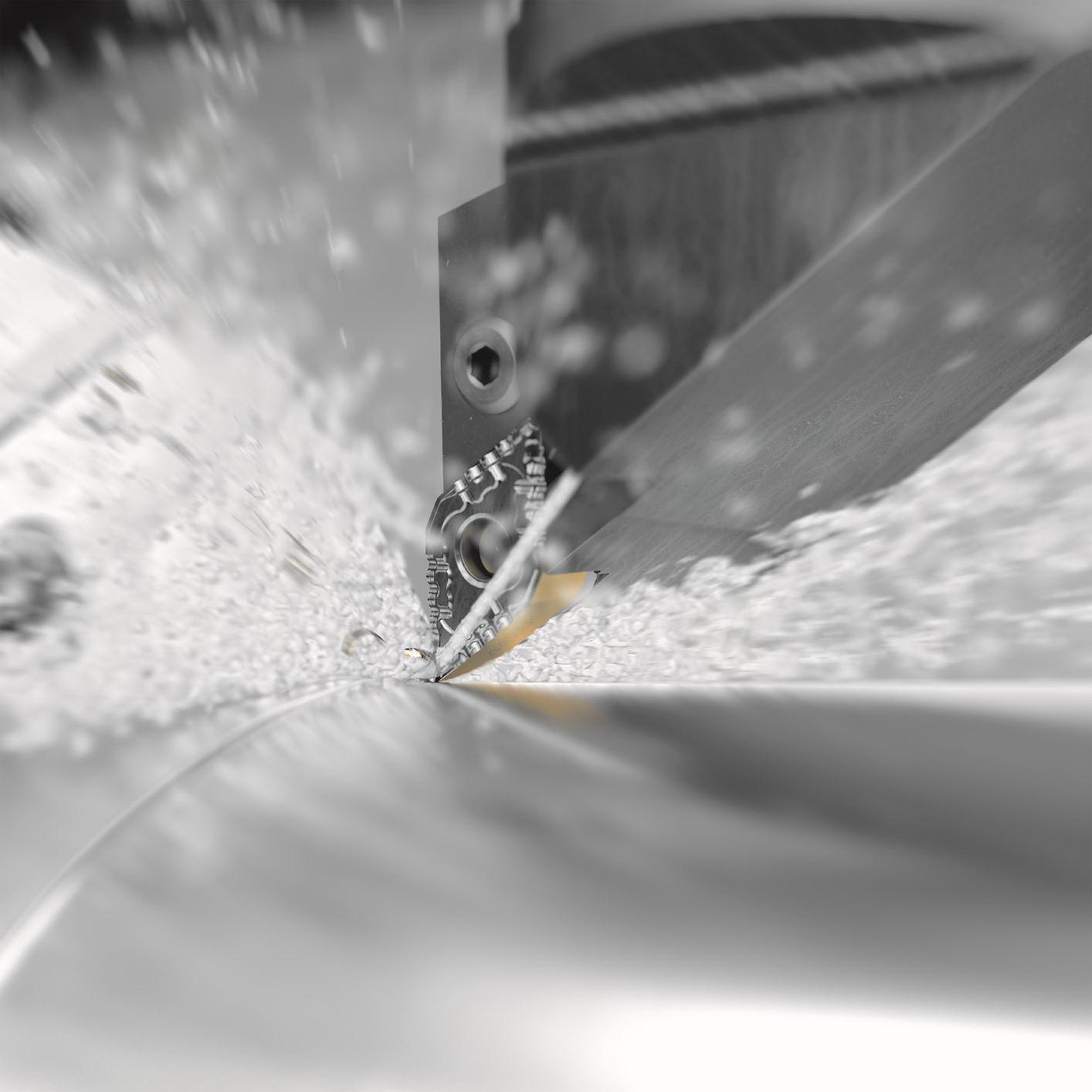 นอกจากนี้ การนำระบบน้ำหล่อเย็นความเที่ยงตรงสูงเข้ามาใช้ในกระบวนการตัดเฉือนยังมีข้อดีหลายประการ จึงทำให้เครื่องมือสำหรับงานกลึงเหล็กกล้าจำนวนมากของ Sandvik Coromant มาพร้อมกับเทคโนโลยีระบายความร้อนดังกล่าว ขณะนี้ Sandvik Coromant กำลังเดินหน้าปรับเพิ่มประสิทธิภาพให้กับกลุ่มเครื่องมือกลึงที่มีการใช้งานกันอย่างแพร่หลายที่สุดกลุ่มหนึ่งของบริษัท