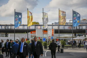 Additional infection protection is not only provided by the HEPA filters and ventilation systems but also by Messe Düsseldorf’s voluntary hygiene measures. The trade fair company continues recommending attendees to wear medical face masks and keep a 1.5 m distance from other persons on the fairgrounds. Furthermore, Messe Düsseldorf makes sanitizing dispensers available and has frequently used contact surfaces cleaned several times daily. Distance markings in waiting areas help to prevent crowds from forming in front of information counters and ticket offices. Doors, unless they are fire doors, are left open so that they can be passed through contactless. Transparent droplet guards at service and information counters will also remain in place.