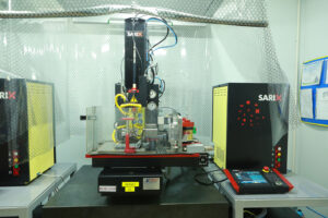 โดยเฉพาะอย่างยิ่งในอุตสาหกรรมฮาร์ดดิสก์ไดรฟ์ที่มีความต้องการความแม่นยำสูงถึง ± 3 ไมครอน ซึ่งบริษัทมีศักยภาพในการตัดเฉือนที่มีประสิทธิภาพสูงในการผลิตโดยใช้เครื่อง 3D Micro EDM ซึ่งสามารถควบคุมความแม่นยำของชิ้นงานได้สูงถึง ± 2 ไมครอน ด้วยเทคโนโลยีนี้ เหมาะสำหรับการผลิตชิ้นงานที่มีโปรไฟล์ 3D ที่ไม่สม่ำเสมอและมีขนาดชิ้นงานที่เล็กที่น้อยกว่า 1.0 มม. ซึ่งเป็นทางเลือกที่ดีที่สุดสำหรับ Sinker EDM แบบเดิม ซึ่งมีอัตราการปฏิเสธสูง สำหรับกรณีดังกล่าวเป็นพื้นที่การตัดเฉือนขนาดเล็กและเปราะ