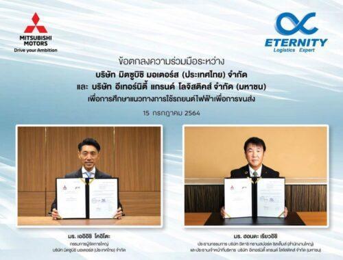 มิตซูบิชิ มอเตอร์ส ประเทศไทย ลงนามเอ็มโอยูกับอีเทอร์นิตี้ แกรนด์ โลจิสติคส์ ศึกษานำร่องการใช้รถยนต์ไฟฟ้าพลังงานแบตเตอรี่ เพื่อการพาณิชย์