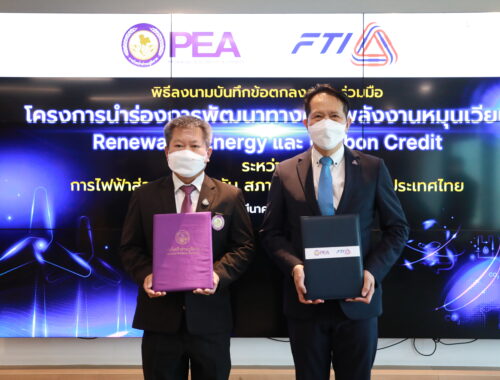 รัฐ-เอกชน จับมือรับเทรนด์โลกใหม่ “พลังงานสะอาด” ลดต้นทุนสู้แข่งขัน “ส.อ.ท. จับมือ กฟภ. นำร่องการใช้พลังงานสะอาดผลิตสินค้าเพื่อการส่งออกในการแก้ปัญหากติกาโลกใหม่ (NTB)”