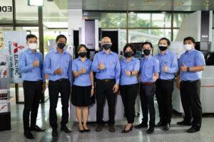 ส่วนที่สองคือด้านผลิตภัณฑ์ โดยปัจจุบันในส่วนของธุรกิจการขายเครื่องเลเซอร์ เราได้นำเครื่องไฟเบอร์เลเซอร์รุ่นใหม่ล่าสุดมาติดตั้งในศูนย์เทคโนโลยีเซ็นเตอร์ที่โชว์รูมของบริษัทฯ ถึง 2 รุ่น คือ GX-F40, GX-F80 และในส่วนของเครื่องจักรอีดีเอ็ม เราได้นำเครื่องจักรรุ่น SG12, SV8P ที่มีระบบ AI Assistance มาติดตั้งในโชว์รูมเพื่อให้ผู้ประกอบการได้ทำการใช้เครื่องจริงก่อนการส่งมอบ และเพื่อเพิ่มประสิทธิภาพของวิศวกรของบริษัทฯ ให้ได้ใช้งานเครื่องจักรและทดสอบหาขีดความสามารถที่สูงสุดของเครื่องจักรด้วยตัววิศวกรเอง ปัจจุบันเทคโนโลยีมีส่วนสำคัญอย่างมากกับผู้ประกอบการ ทางบริษัทมิตซูบิชิฯ ได้เล็งเห็นถึงจุดที่เราจะต้องตัดสินใจคิดค้นและเพื่อเพิ่มประสิทธิภาพของเครื่องจักรในปัจจุบัน โดยเราได้นำระบบสมองกลอัจฉริยะหรือ AI Assistance เข้ามาใช้งานจริงในเครื่องจักร ไม่ว่าจะเป็นเครื่องไฟเบอร์เลเซอร์รุ่น GX-F Series ที่เป็นเทคโนโลยีเลเซอร์เครื่องแรกของโลก ที่ติดตั้งระบบ AI Assistance เครื่องมิตซูบิชิอีดีเอ็ม SG Series, SV-P Series ซึ่งล้วนแต่มีระบบ AI Assistance ติดตั้งมาจากโรงงาน เพื่อควบคุมการทำงานของเครื่องจักรในการตรวจสอบการทำงานของเครื่องจักรก่อนที่จะเกิดข้อผิดพลาดในการผลิต ซึ่งจะส่งผลตรงไปยังผู้ประกอบการหากไม่มีระบบ AI ปัญหาเหล่านี้จะหมดไปเมื่อเครื่องจักรของเรามีระบบ AI Assistance มารองรับการทำงานในปัจจุบัน