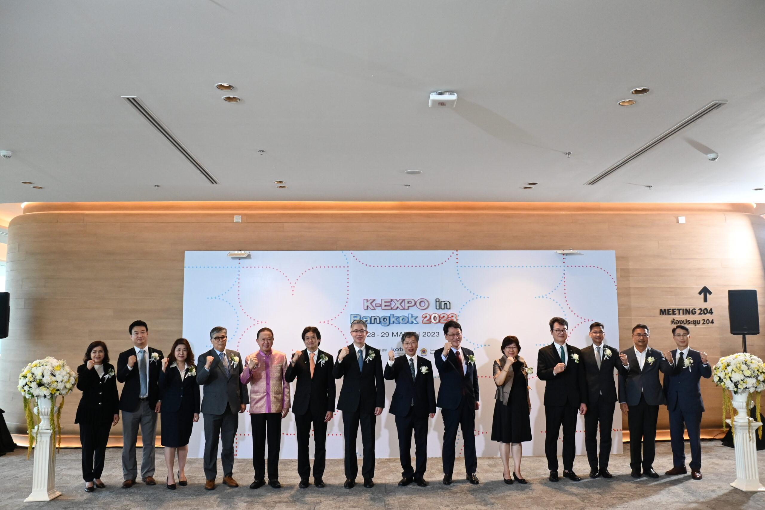 สำหรับงาน “Korea Expo in Bangkok 2023” หรือ K-EXPO in Bangkok 2023 จัดขึ้นระหว่างวันที่ 28-29 มีนาคม 2566 โดยความร่วมมือของกระทรวงการค้า อุตสาหกรรม และพลังงาน ( Ministry of Trade, Industry and Energy: MOTIE) และสำนักงานส่งเสริมการค้าและการลงทุนเกาหลีใต้ (KOTRA) ซึ่งเป็นหน่วยงานส่งเสริมการค้าและการลงทุนของรัฐบาลเกาหลีใต้ โดยภายในงานมีผู้ประกอบการเกาหลีใต้มากกว่า 70 บริษัท จาก 2 กลุ่มอุตสาหกรรมหลัก ได้แก่ สินค้าอุปโภคบริโภค (Consumer Products) และสินค้าอุตสาหกรรม (Industrial Products) เดินทางมาประชุมเจรจาธุรกิจ และหาคู่ค้ากับผู้ประกอบการแบบ 1:1 ทั้งกับผู้ประกอบการไทยกว่า 100 บริษัท และผู้ประกอบการจาก 10 ประเทศ ในแถบเอเชีย อาทิ สิงคโปร์ เวียดนาม มาเลเซีย อินโดนีเซีย และอินเดีย อีกกว่า 100 บริษัท