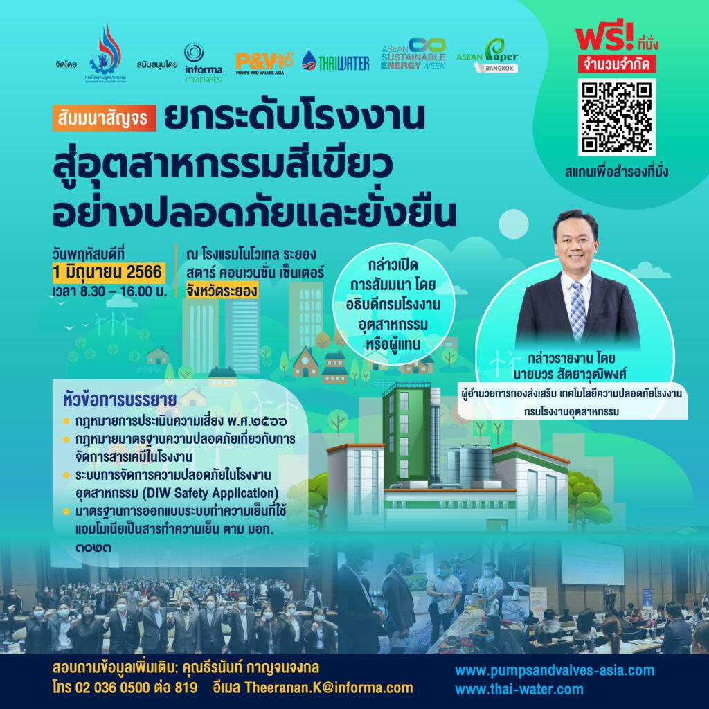 กลับมาอีกครั้งกับสัมมนาสัญจรประจำปีโดย กรมโรงงานอุตสาหกรรม กระทรวงอุตสาหกรรม ร่วมกับ อินฟอร์มา มาร์เก็ตส์ ประเทศไทย ผู้จัดงานแสดงสินค้า Pumps and Valves Asia และ งาน Thai Water Expo 2023