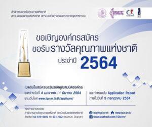 ขอเชิญองค์กรร่วมคว้าโอกาสครั้งสำคัญ สู่เส้นทางแห่งความเป็นเลิศกับ “รางวัลคุณภาพแห่งชาติ ประจำปี 2564” เปิดรับสมัครขอรับรางวัลแล้ววันนี้