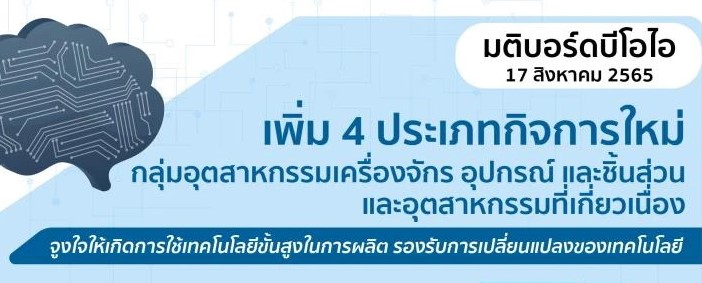บอร์ดบีโอไอ ได้เห็นชอบให้เพิ่มประเภทกิจการผลิตภัณฑ์ที่ใช้เทคโนโลยีขั้นสูง 4 ประเภท ได้แก่