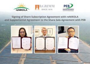 B.Grimm Malaysia ยังได้เข้าทำสัญญาแก้ไขเพิ่มเติม เพื่อทำการแลกหุ้นระหว่างกันกับPimpinan Ehsan Berhad (PEB) ซึ่งเป็นบริษัทจดทะเบียนในตลาดหลักทรัพย์ของประเทศมาเลเซียโดยภายหลังการแลกหุ้นดังกล่าว B.GrimmMalaysia จะมีสัดส่วนการถือหุ้นใน PEB 40.6% และ PEB จะถือหุ้นใน reNIKOLA Holdings ในสัดส่วน 100% ทั้งนี้รายการดังกล่าวอยู่ระหว่างการอนุมัติจากหน่วยงานที่เกี่ยวข้อง