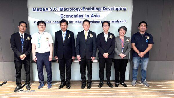 พล.ต.ท.พรชัย กล่าวว่า “Infusion Pump เป็นหนึ่งในอุปกรณ์ทางการแพทย์ที่ถูกนำมาใช้อย่างแพร่หลายในโรงพยาบาล เพื่อยืนยันว่าเครื่องมือยังคงทำงานได้อย่างถูกต้อง แนวปฏิบัติที่ทำร่วมกันในวันนี้ จะสร้างการรับรู้และใช้เป็นข้อมูลอ้างอิงสำหรับการทดสอบและสอบเทียบเครื่องควบคุมการให้สารละลายทางหลอดเลือดดำ การสอบเทียบเครื่องวิเคราะห์อุปกรณ์การให้ยา และพัฒนาการสอบเทียบเครื่องวิเคราะห์อุปกรณ์การให้ยาในกลุ่มประเทศ DEC และ APMP โดยกิจกรรมดังกล่าวจะนำเอาตัวอย่างและประสบการณ์จาก APMP มาพัฒนาต่อยอดให้แก่เทคโนโลยีในประเทศ ซึ่งหวังเป็น อย่างยิ่งว่าจะสามารถนำมาปรับปรุงและพัฒนาหลักเกณฑ์ในระดับภูมิภาคที่เหมาะกับบริบทและสอดคล้องกับหลักปฏิบัติสากล ทั้งนี้ เราได้รับการสนับสนุนอย่างมากจากสถาบันมาตรวิทยาแห่งสหพันธ์สาธารณรัฐเยอรมนี (PTB) ผ่านโครงการ Metrology – Enabling Developing Economies in Asia หรือ MEDEA และ APMP Medical Metrology”\