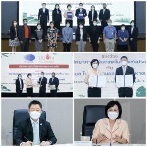 ศ.(วิจัย) ดร.ชุติมา เอี่ยมโชติชวลิต ผู้ว่าการสถาบันวิจัยวิทยาศาสตร์และเทคโนโลยีแห่งประเทศไทย (วว.) กระทรวงการอุดมศึกษา วิทยาศาสตร์ วิจัยและนวัตกรรม (อว.) นายเดชพนต์ เลิศสุวรรณโรจน์ กรรมการผู้จัดการใหญ่ บริษัท อุบล ไบโอ เอทานอล จำกัด (มหาชน) หรือ UBE ลงนามบันทึกข้อตกลงความร่วมมือเชิงบูรณาการนำผลงานวิจัย องค์ความรู้ ด้านวิทยาศาสตร์ เทคโนโลยีและนวัตกรรม ไปใช้ประโยชน์ในเชิงพาณิชย์และเชิงสังคม โดยมุ่งเน้นพัฒนากระบวนการผลิต วิจัยพัฒนาการใช้ประโยชน์สารชีวภัณฑ์ในระดับภาคอุตสาหกรรม รวมทั้งการทำเกษตรปลอดภัยและเกษตรอินทรีย์ครบวงจร โดยมีระยะเวลาความร่วมมือ 5 ปี โอกาสนี้ นายสายันต์ ตันพานิช รองผู้ว่าการวิจัยและพัฒนาด้านอุตสาหกรรมชีวภาพ วว. ดร.อาภากร สุปัญญา รองผู้ว่าการยุทธศาสตร์และจัดการนวัตกรรม วว. นายวุฒิพงศ์ นิลผาย รองกรรมการผู้จัดใหญ่ UBE ฝ่ายปฏิบัติการ นางสาวสุรียส โควสุรัตน์ รองกรรมการผู้จัดการใหญ่ UBE ฝ่ายพัฒนาธุรกิจ พร้อมผู้บริหาร บุคลากร ทั้งสองหน่วยงานร่วมเป็นเกียรติ ในวันที่ 18 พฤศจิกายน 2564 ณ ห้องประชุมใหญ่ชั้น 5 อาคาร Admin วว. เทคโนธานี จังหวัดปทุมธานี