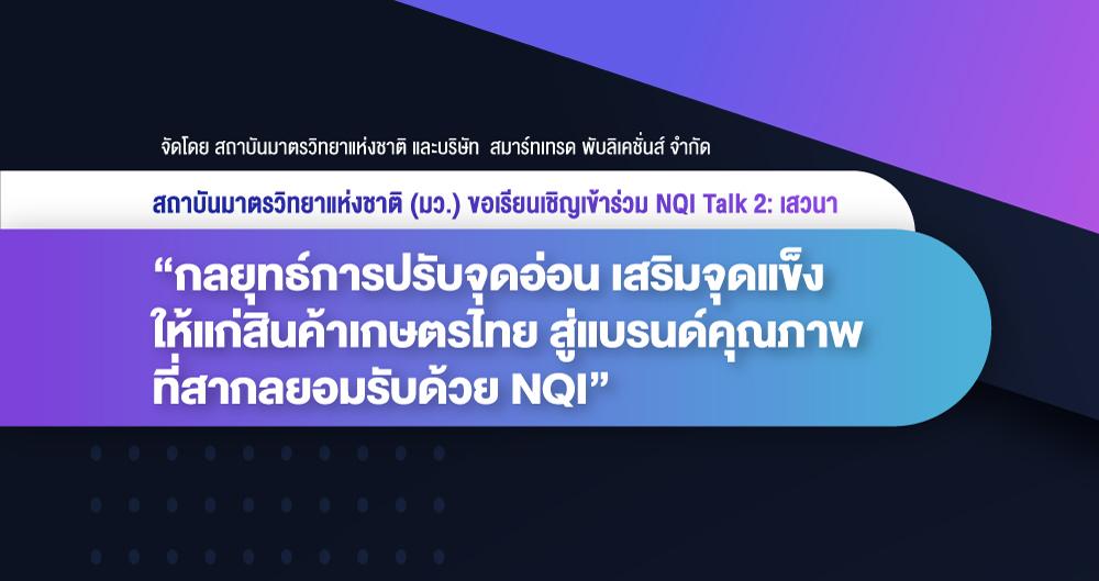 สถาบันมาตรวิทยาแห่งชาติ (มว.) ขอเรียนเชิญเข้าร่วม NQI Talk 2: เสวนา “กลยุทธ์การปรับจุดอ่อน เสริมจุดแข็งให้แก่สินค้าเกษตรไทย