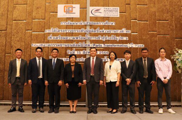 รวมถึงการนำเสนอผลการศึกษาภายใต้โครงการยกระดับผู้ผลิตชิ้นส่วนยานยนต์ไทยเพื่อเตรียมความพร้อมในการเข้าสู่ห่วงโซ่อุปทานของอุตสาหกรรมยานยนต์สมัยใหม่ ปี พ.ศ. 2566 โดย คณะผู้วิจัย ซึ่งได้ประเมินความสามารถการแข่งขันของผู้ผลิตชิ้นส่วนยานยนต์ในประเทศไทย พบว่า โดยเฉลี่ย ผู้ผลิตชิ้นส่วนต่างชาติจะมีความสามารถในการแข่งขันสูงกว่าผู้ผลิตชิ้นส่วนคนไทย ดังนั้น ความท้าทายใหม่ ๆ ที่เกิดขึ้น ณ ปัจจุบัน ทั้งกระแสการเติบโตของยานยนต์ไฟฟ้า และการปรับตัวทางด้านสิ่งแวดล้อม อันเนื่องมาจากการเปลี่ยนแปลงสภาพภูมิอากาศ จึงส่งผลให้ผู้ผลิตชิ้นส่วนสามารถปรับตัวในระดับแตกต่างกันไป หรือต้องการความช่วยเหลือแตกต่างกันออกไป ที่สำคัญ ผู้ผลิตชิ้นส่วนที่มีความสามารถในการแข่งขันระดับสูงมีจำนวนไม่มากนัก หรือคิดเป็นเพียง