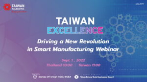 สัมมนาออนไลน์ “Taiwan Excellence Driving a New Revolution in Smart Manufacturing Webinar” พร้อมเชิญชวนนักอุตสาหกรรมการผลิตไทยเข้าชมงาน “Taiwan Expo in Thailand 2022” ระหว่างวันที่ 31 สิงหาคม 2565 ถึงวันที่ 2 กันยายน 2565 ในรูปแบบออนไลน์ 360 องศา