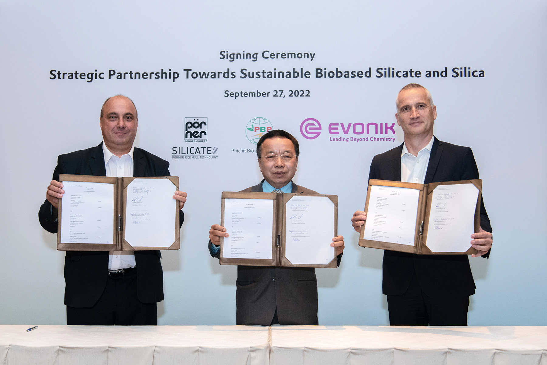 “ที่โรงงานทดสอบในเยอรมนีของเรา สามารถผลิตสารไบโอซิลิเกตคุณภาพเยี่ยม ซึ่งเป็นผลจากการทำวิจัยและพัฒนาในกระบวนการตรวจสอบคุณสมบัติเบื้องต้นร่วมกับอิวอนิกเป็นเวลาหลายปี” นายเกรฮาร์ด บารคเชอร์ ซีอีโอของเพอร์เนอร์ เยอรมนี กล่าว “ส่วนในขั้นตอนการจดสิทธิบัตร เราใช้วัตถุดิบขี้เถ้าแกลบของโรงไฟฟ้าชีวมวล ภายใต้เทคโนโลยีอัจฉริยะของเพอร์เนอร์ไบโอซิลิเกต (Pörner Bio-Silicate) ในการคัดกรองต้นข้าวนำมาผลิตโซเดียมซิลิเกตคุณภาพสูง เพื่อการใช้ประโยชน์หลายประเภท รวมทั้งการผลิตซิลิก้าเพื่อใช้ในอุตสาหกรรมยางรถยนต์ ความร่วมมือครั้งนี้ทำให้เกิดการผลิตไบโอซิลิเกตจำนวนมากเพื่อใช้ในระดับอุตสาหกรรมได้ ซึ่งจะลดปริมาณการปล่อยก๊าซคาร์บอนไดออกไซด์ลงอย่างมีนัยสำคัญเมื่อเทียบกับกระบวนผลิตแบบที่เป็นอยู่ในขณะนี้ นับเป็นการเริ่มกำจัดคาร์บอนในอุตสาหกรรมการแปรรูปซิลิเกตทั่วโลก”