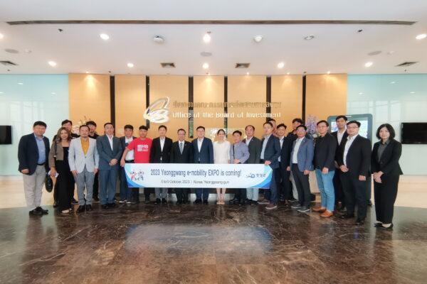 สมาคมนวัตกรรมยานยนต์ไฟฟ้าแห่งเกาหลีใต้ พร้อมด้วยนายกเทศมนตรีเมืองยองกวาง ซึ่งเป็นเมืองต้นแบบและศูนย์กลางการพัฒนาเทคโนโลยีการขับเคลื่อนด้วยไฟฟ้า (e – Mobility) ของเกาหลีใต้ นำคณะผู้บริหารและผู้ประกอบการอีวีกว่า 20 คน เดินทางเข้ามาศึกษาลู่ทางลงทุนอุตสาหกรรมอีวีในไทย พร้อมหารือกับบีโอไอและพันธมิตรบริษัทไทย ต่อยอดจากที่บีโอไอเดินสายโรดโชว์เกาหลีใต้เมื่อเดือนพฤษภาคมที่ผ่านมา