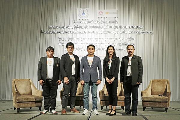 ณัฐธิดา ช่วยบ้าน (ที่ 4 จากซ้าย) วิศวกรโรงงานอาวุโส บริษัท ไทย-ไลซาท จำกัด หนึ่งในกลุ่มบริษัท ยูนิเวนเจอร์ ร่วมเสวนาในหัวข้อ “เทคโนโลยี AR และ VR กับการยกระดับบุคลากรเพื่อการอนุรักษ์พลังงาน” ในงานสัมมนาเผยแพร่ผลสำเร็จและเปิดตัวนวัตกรรมการเรียนรู้เพื่อการประหยัดพลังงานด้วย Immersive Technology ที่จัดโดย สถาบันพลังงานเพื่ออุตสาหกรรม สภาอุตสาหกรรมแห่งประเทศไทย เพื่อพัฒนาระบบ AR และ VR มาใช้ในการสร้างหลักสูตรอบรมบุคลากรในภาคอุตสาหกรรม ให้สามารถเรียนรู้การอนุรักษณ์พลังงานเชิงปฏิบัติการ และสามารถนำประสบการณ์การเรียนรู้ไปปฏิบัติจริงได้ดียิ่งขึ้น โดยมี ณัฐพล ทองคำ (ที่ 2 จากซ้าย) Power Management Section Head บริษัท ไทยเบเวอร์เรจ แคน จำกัด, ทัพพสารณ์ พรหมทอง (ที่ 1 จากซ้าย) วิศวกรเทคนิคการผลิต และ ผอส. บริษัท ไทยลักซ์ เอ็นเตอร์ไพรส์ (ประเทศไทย) จำกัด และชัชวาล สมานสุข (ที่ 5 จากซ้าย) ที่ปรึกษาโครงการฯ ร่วมเสวนา เมื่อเร็วๆ นี้ ณ ห้องแกรนด์ บอลลูน ชั้น 4 โรงแรมอินเตอร์คอนติเนนตัล กรุงเทพ
