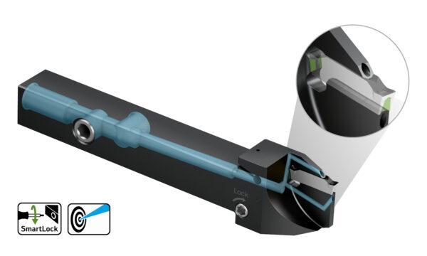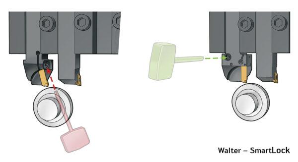 With Walter SmartLock, the clamping screw is located on the side of the tool. This allows the indexable insert to be changed quickly and easily, especially on long centre lathes and multi-spindle machines.