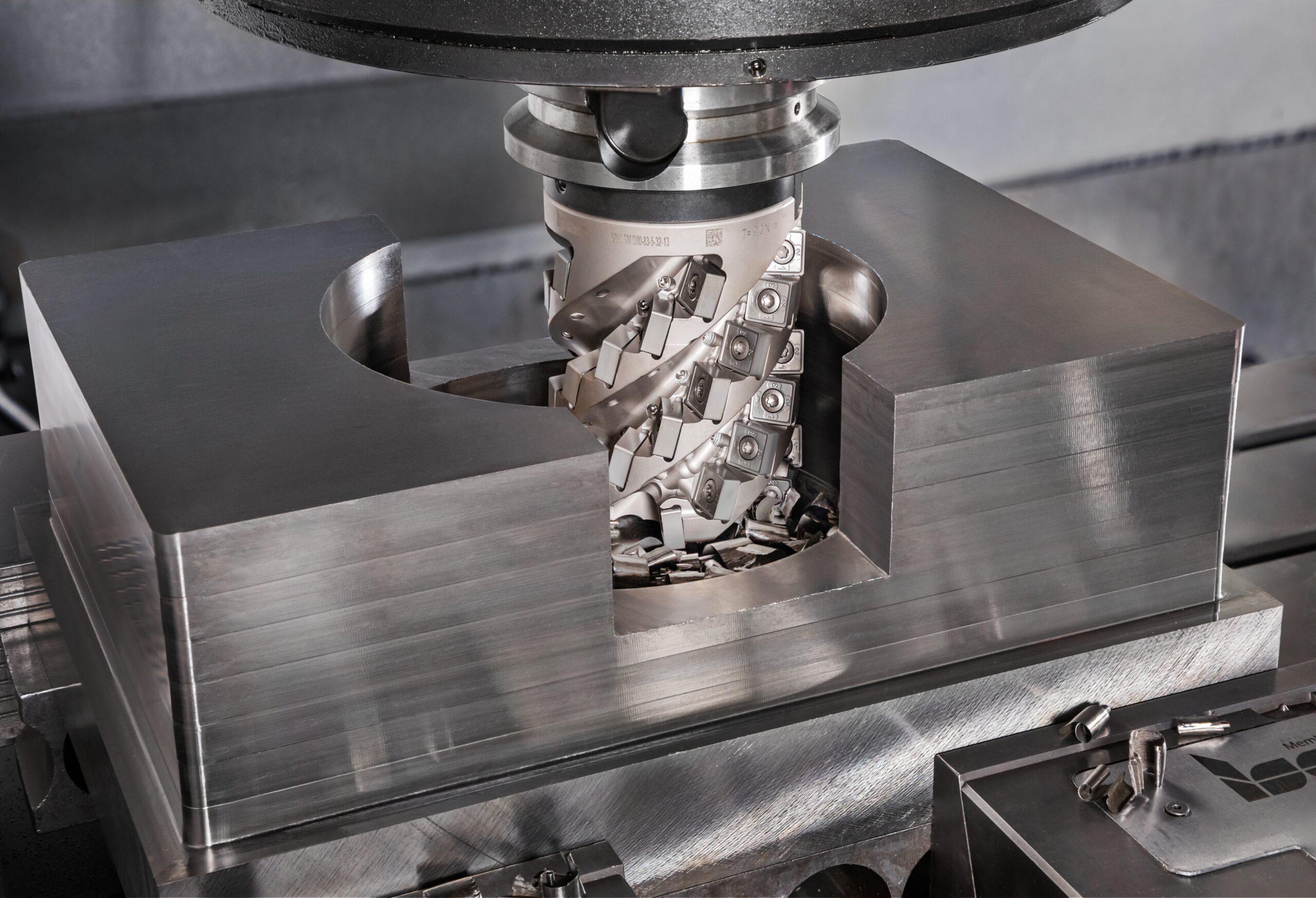 One of the revolutionized tools is QUICK-X-FLUTE (Figure 1), new family of 90-degree extended flute shell mills with double-sided square inserts. These mills are designed with an optimized flute shape that strikes a balance between tool rigidity and effective chip flow, enabling high Metal Removal Rates (MRR). The developed flute profile enhances vibration resistance, especially during workpiece entry and exit, allowing for increased cutting data and improved productivity. The inner channels of the mill have replaceable nozzles and frontal outlets, facilitating direct High-Pressure Coolant supply (HPC) to the cutting zone. This improves cooling and lubrication, contributing to effective chip control.