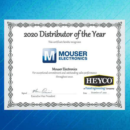“We are honored and grateful to receive this prestigious award from Heyco,” said Keith Privett, Vice President of Supplier Management at Mouser Electronics. “We greatly value our relationship with them and look forward to our continued shared growth into 2021 and beyond.”