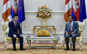 Phnom Penh, Cambodia, Cambodian Prime Minister Hun Sen met Huawei Group Senior Vice President and Asia Pacific Region President, Mr. Lin Baifeng at the Peace Palace, Phnom Penh. The meeting focused on exchanged views on a broad range of topics, including advancing digital infrastructure in Cambodia, cultivation of information and telecommunication technology (ICT) talent, national digital policy etc.
