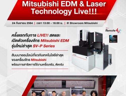 เรียนเชิญร่วมงานสัมมนาออนไลน์ “Mitsubishi EDM & Laser Technology” ในวันที่ 24 กันยายน 2564 เวลา 13.00 – 16.00 น.