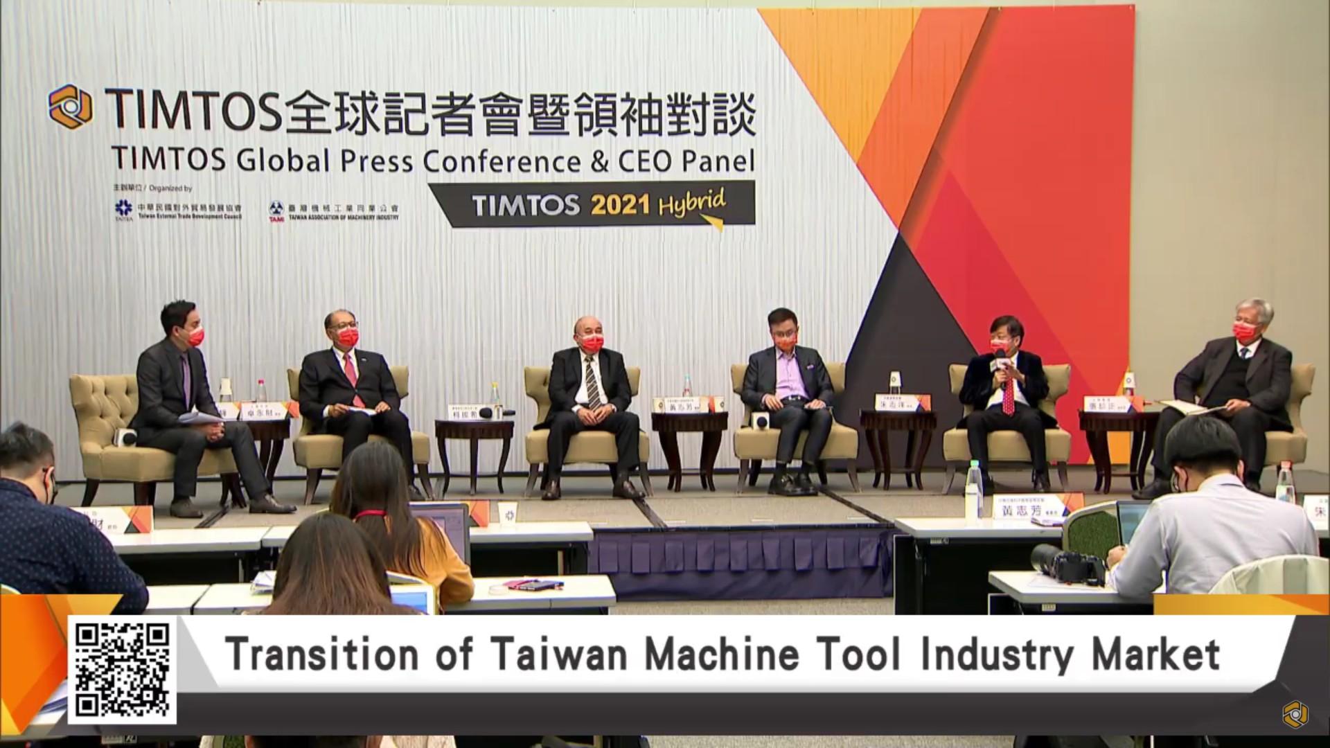 สำหรับงานแถลงข่าว TIMTOS 2021 ครั้งนี้ ได้มี Mr. James C. F. Huang, Chairman of TAITRA และ Mr. Alex Ko, Chairman of TAMI ได้มากล่าวเปิดงานพร้อมกับกล่าวต้อนรับผู้เข้าร่วมงานและผู้ชมทางออนไลน์ โดยได้เผยถึงสถานการณ์และปรับเปลี่ยนการเข้าเยี่ยมชมงานในรูปแบบใหม่ที่เป็น Hybrid เนื่องด้วยของสถานการณ์โรคระบาดโควิด -19 ที่ผู้ซื้อกับผู้ขายจะสามารถพบปะเจรจากันได้ทั่วโลกด้วยการสตรีมมิ่ง นอกจากนี้ยังแสดงข้อมูลช่องทางการเข้าร่วมชมงาน TIMTOS 2021 ที่เป็นรูปแบบออนไลน์ด้วย ในโอกาสนี้ได้ยังมีผู้บริหารของบริษัทผู้ผลิตเครื่องจักรชั้นนำในประเทศไต้หวันได้ให้เกียรติมาร่วมเสวนาหัวข้อ “Overview of Global Machine Tool Industry during the Pandemic” อาทิ Mr. Chang Yu-Cheng, Chairman of CHIN FONG MACHINE INDUSTRIAL., Mr. Jimmy Chu, CEO of Fair Friend Group., Mr. Eric Y.T. Chuo, Chairman of HIWIN เป็นต้น