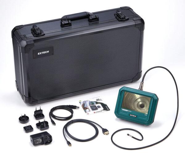 Each kit is complete with a HDV700 Videoscope Screen; camera probe (model dependent on kit ordered); 32 GB Micro SD card; USB-A to USB-C cable; HDMI Type A to Type D cable; Li-ion rechargeable battery (built-in); and universal adapter. Probe options include general purpose, dual view inspection, two-way 180° articulation, four-way 110° articulation, and pipe inspection options.