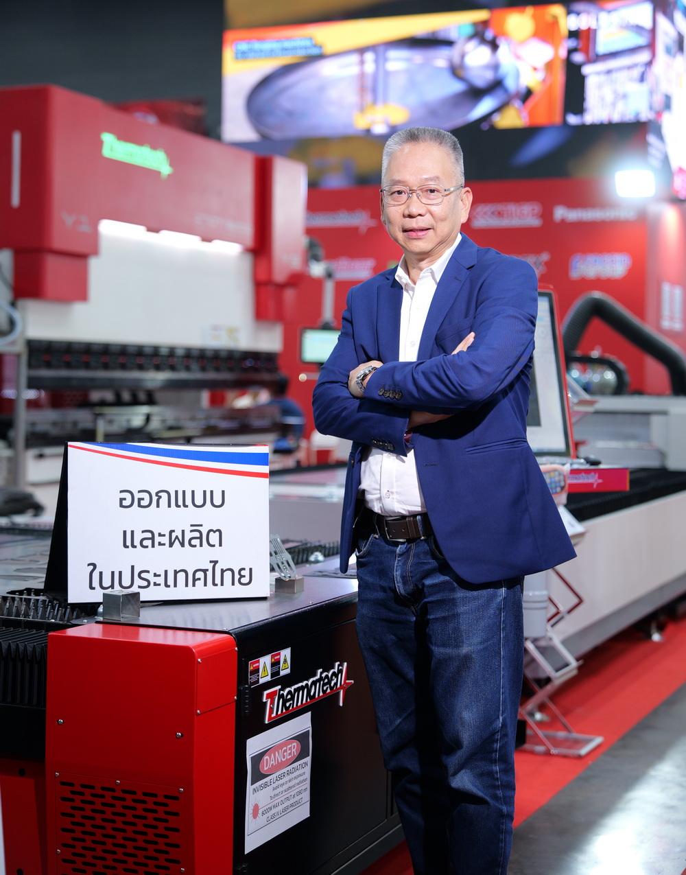 Mr. Ekawee Vaitoonkiat, Managing Director of the company, gives his explanations that Thermal Mechanics is an expert in manufacturing machinery for metal cutting and automation systems. We have been in this business for 22 years as a distributor and manufacturer. Our machinery is under the “Thermatec” brand, and we are well-known for our fiber laser machines used in metal cutting. We have 7 years of expertise in this type of machinery, with continuous developments for higher cutting power. Initially, we developed machines with a cutting power of 1,500 watts, but currently, our cutting machines have a maximum power of 30,000 watts, capable of cutting steel up to 70 mm thick and stainless steel up to 60 mm thick. Meanwhile, we have developed two models of machines: one for cutting sheet metal and the other for cutting pipes. The sheet metal cutting machine can cut sheets and pipes with a width of 3.5 meters and a length of 14 meters. These developed and manufactured machines are produced in Thailand by Thermal Mechanics Co., Ltd., under the “Thermatec Brand” and have always received good feedbacks from Thai businesses in terms of the craftsmanship, quality standards, and the after-sales service.